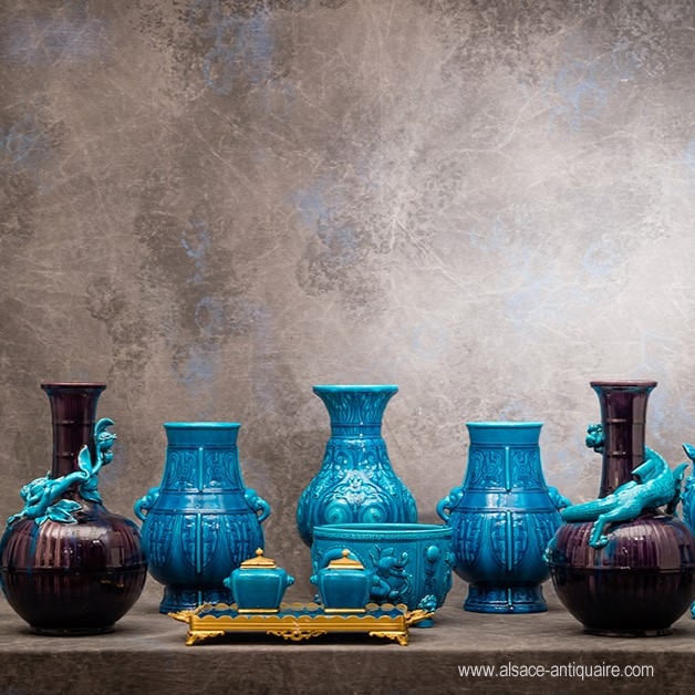 Rare et bel ensemble de céramiques de Théodore Deck. Nous sommes acheteurs aux meilleurs cours de céramiques de Theodore Deck - Tel +33607840290