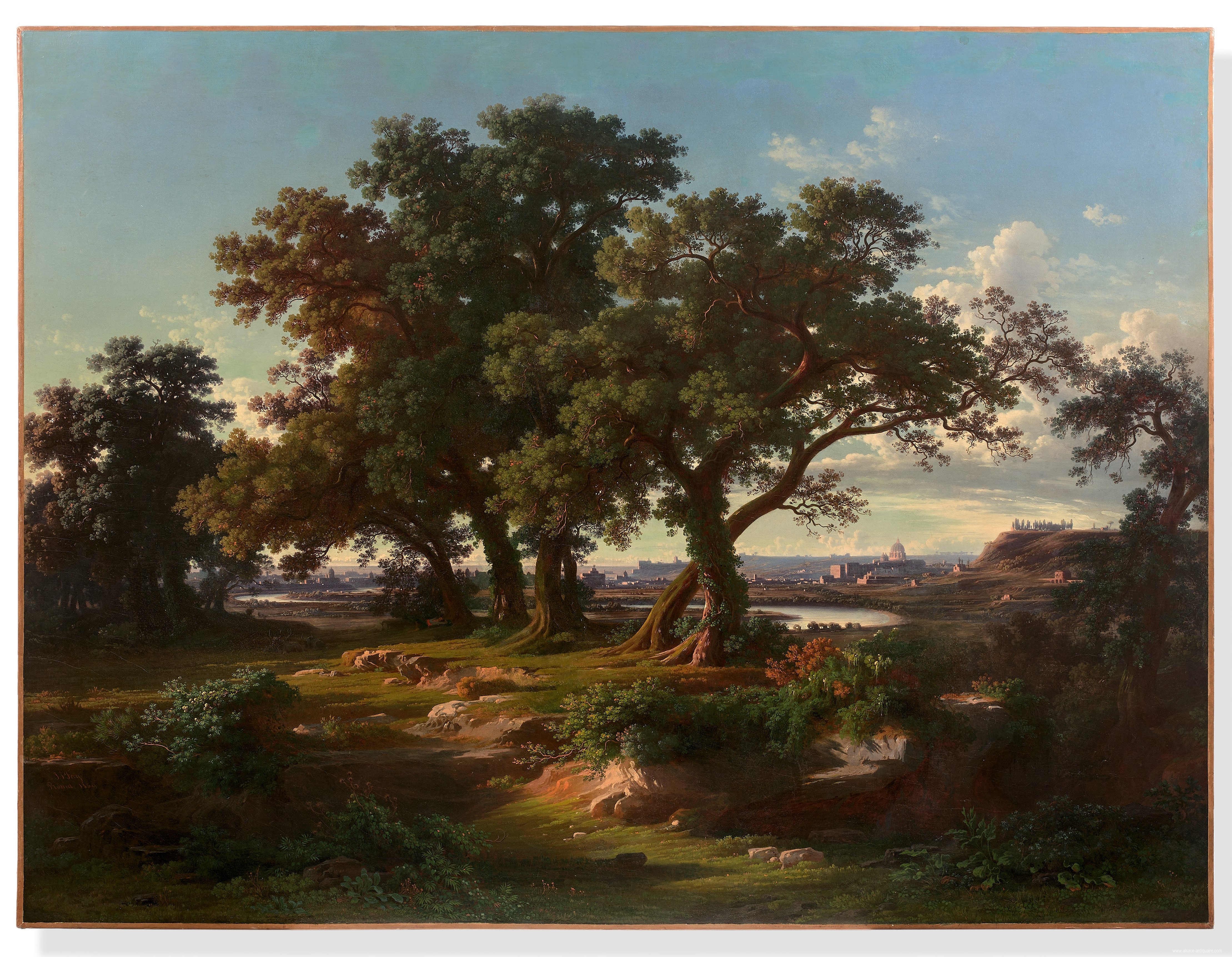 Huile sur toile signée, datée et localisée sur la roche au bas gauche: « J. J Frey / Rome 1859 »