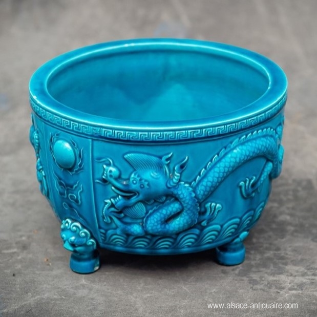 DECK Théodore - JARDINIERE AU DRAGON SIGNEE THEODORE DECK (1823-18
