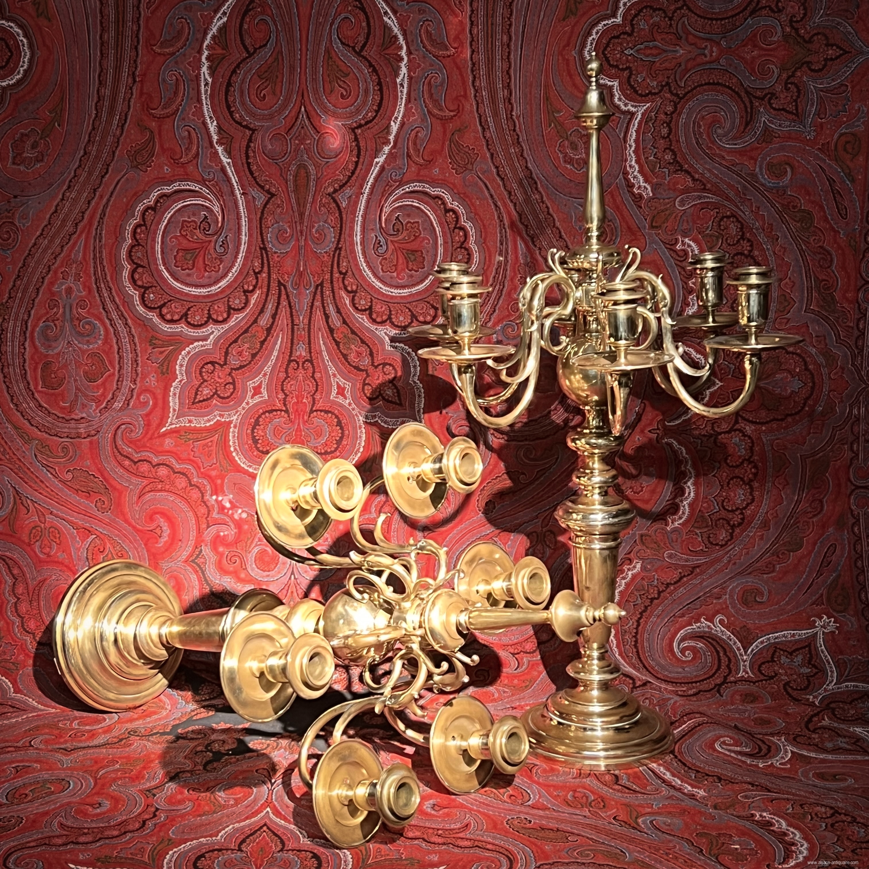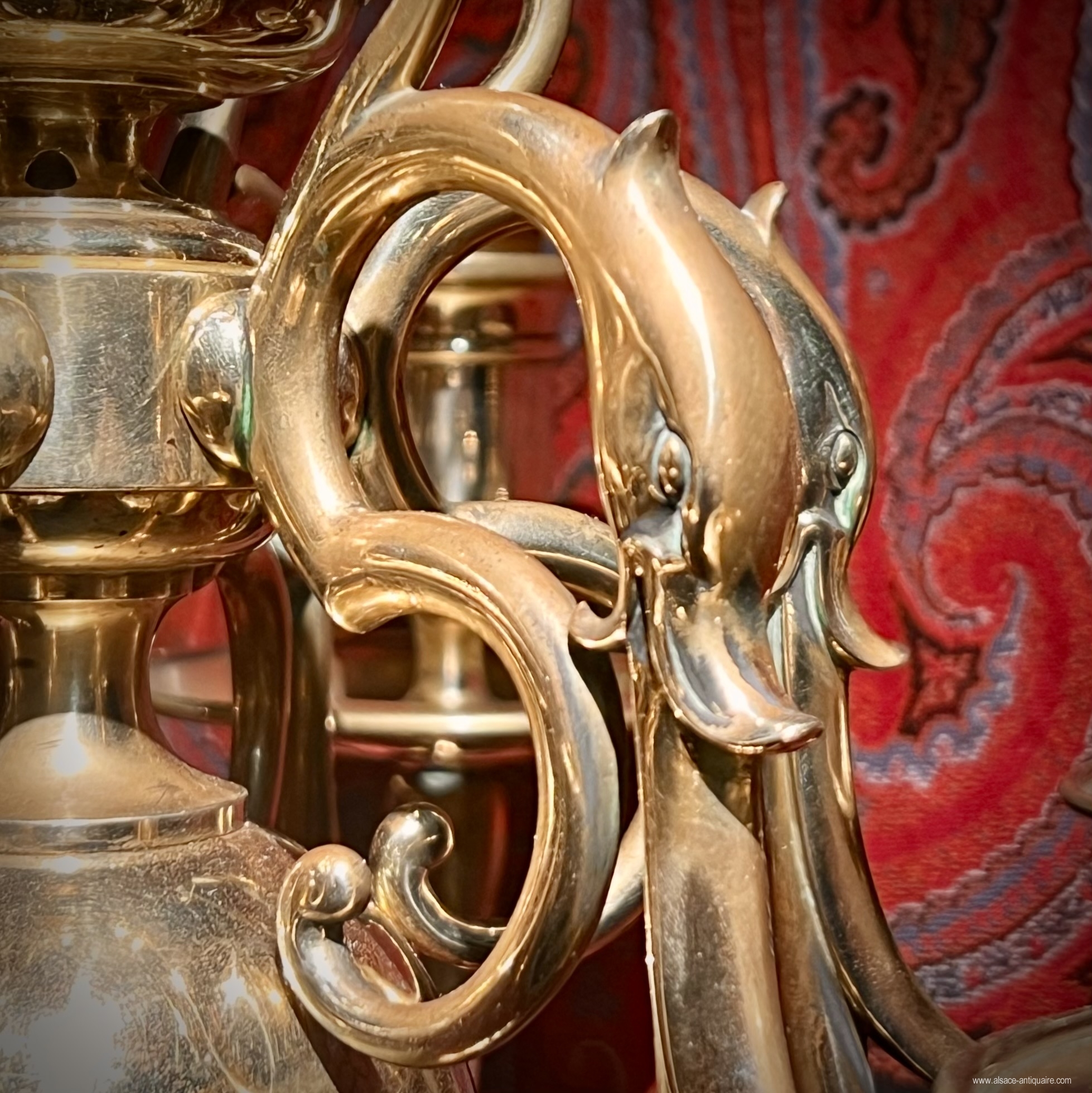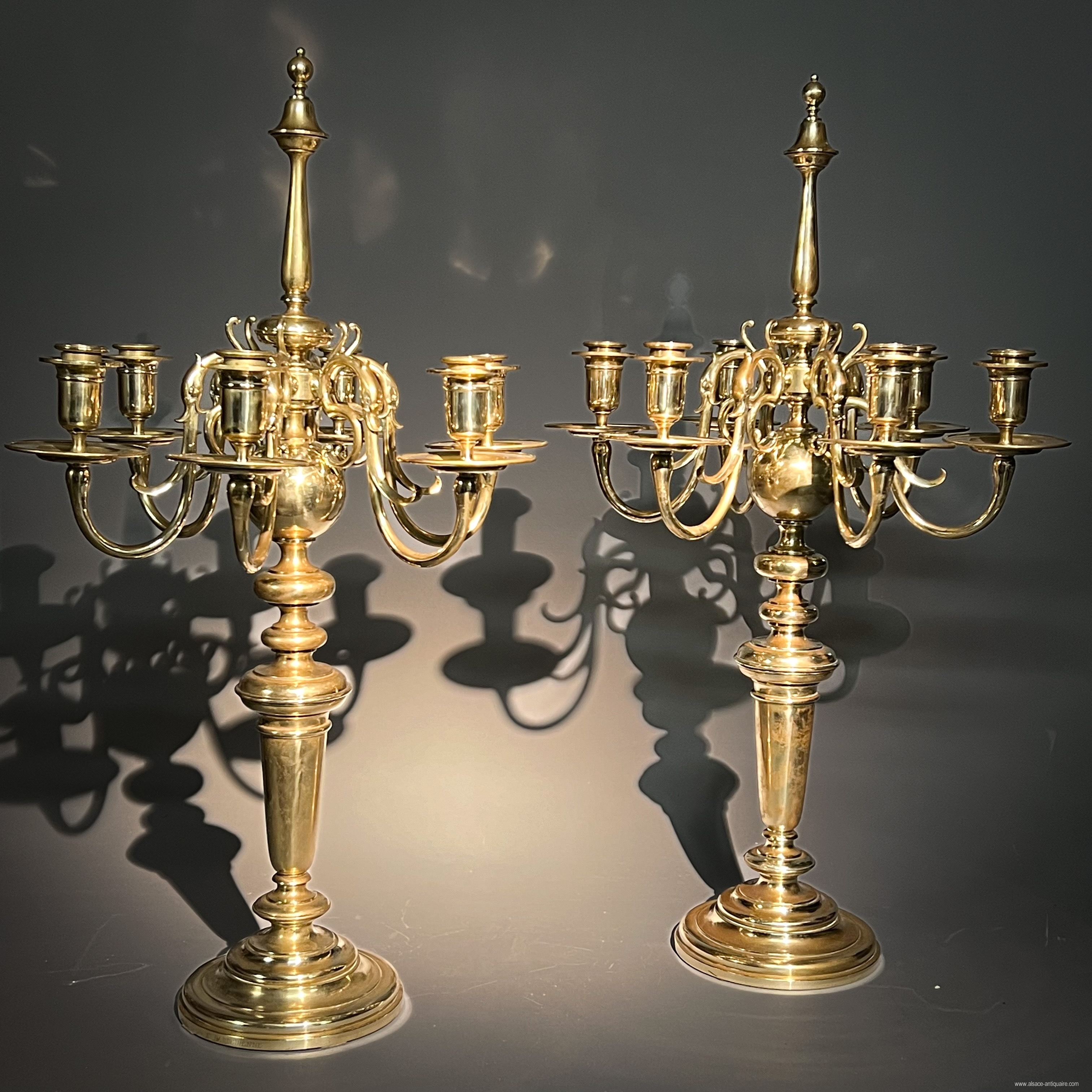 Spectacular pair of bronze candlesticks with 6 lights, baluster decoration on circular molded base, the arms supported by consoles in the shape of swan necks, open mouth. One of the girandoles is signed on the base F.BARBEDIENNE. Height: 71 cm diameter: 46.5 cm cm. Beautiful patina, some small holes due to an old electrical assembly, also allowing a new adaptation in case of destination as a lamp base. Ferdinand Barbedienne born August 6, 1810 in Saint-Martin-de-Fresnay and died March 21, 1892 in Paris, renowned for its artistic bronze foundry. He has published and produced the works of numerous sculptors, including among others Antoine-Louis Barye, Pierre-Jules Mène, Carrier Belleuse, many of the works released from his workshops appear in the collections of the greatest museums. He also produced remarkable decorative objects, one of the most memorable of which was the monumental neo-renaissance clock which earned him a gold medal at the Universal Exhibition of 1878, today kept at the Paris City Hall. .