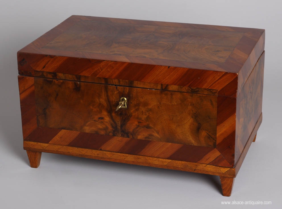 Courtesy box, inlaid with walnut, plum tree, maple wood, Alsace XIXth century.