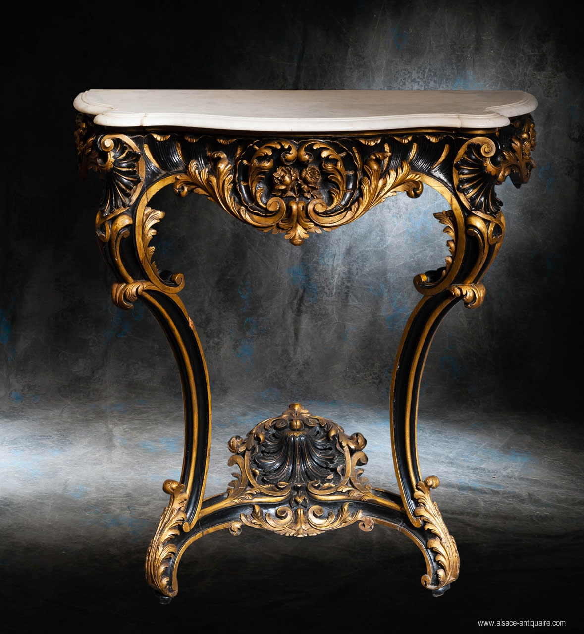 Console and center table in rococo style carved wood painted black and gold - Napoleon III