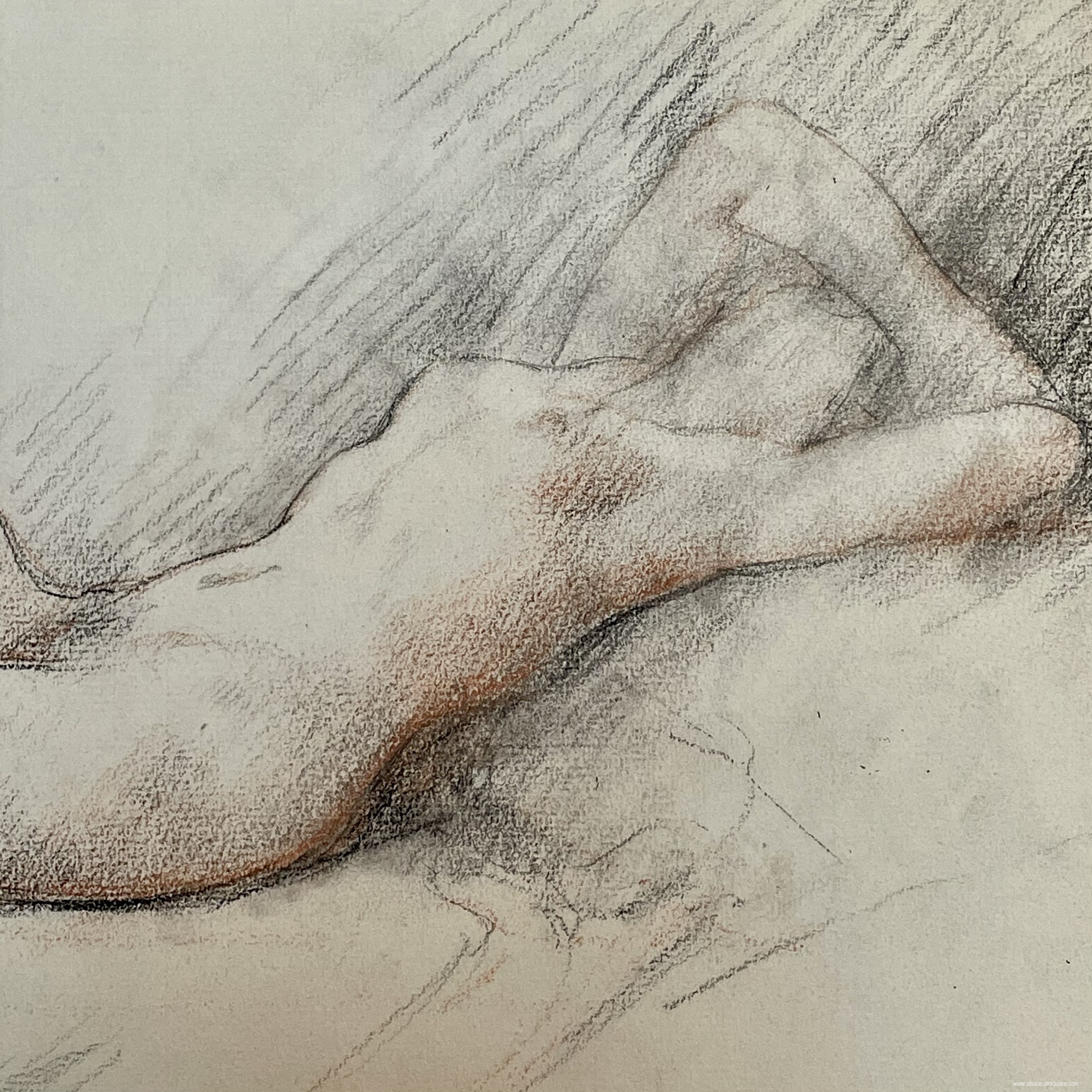 Nude study, a field in which Many Benner (1873-1962), a pupil of Jean-Jacques Henner and Benjamin Constant, excelled. School of Fine Arts of Paris second Grand Prix of Rome. French career for this painter born in Italy in Capri, 4th generation of a line of artists, his father is Jean Benner, a painter born in Mulhouse and known for his floral compositions.