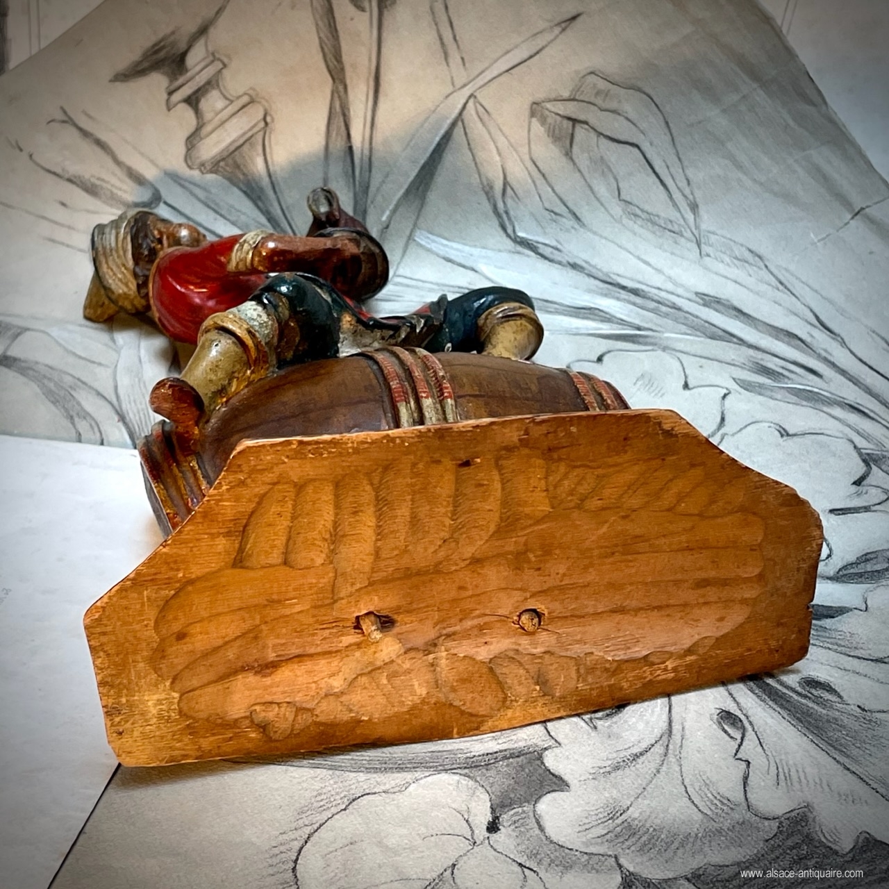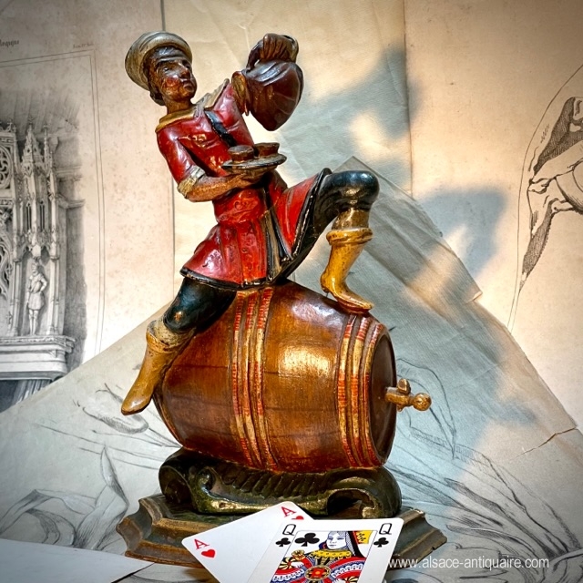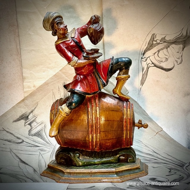 The innkeeper, polychrome wood sculpture, rare old commemorative object of the innkeeper profession, mascot or sign model. Beautiful patina, Folk Art Alsace - Rhine Valley. XIXth century.