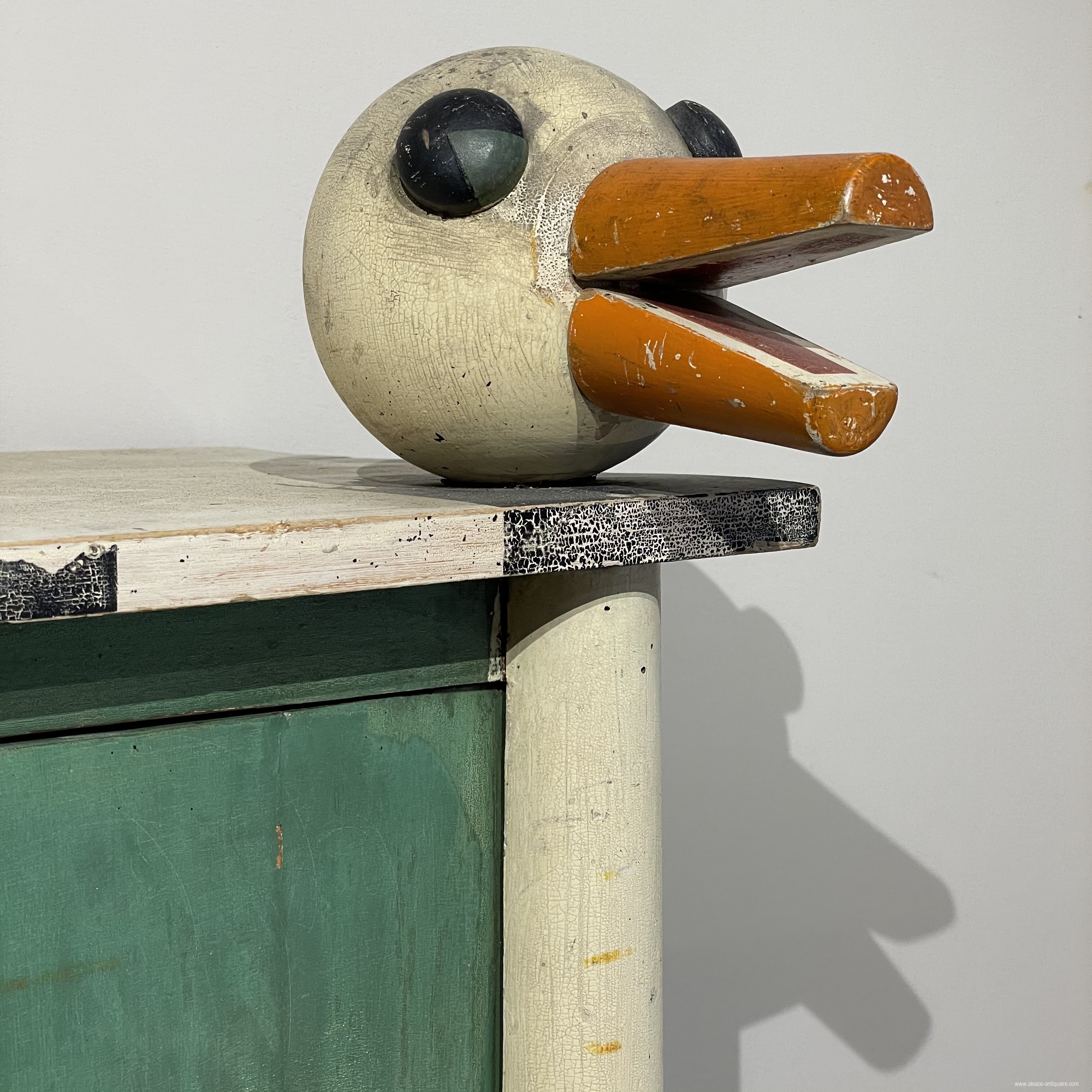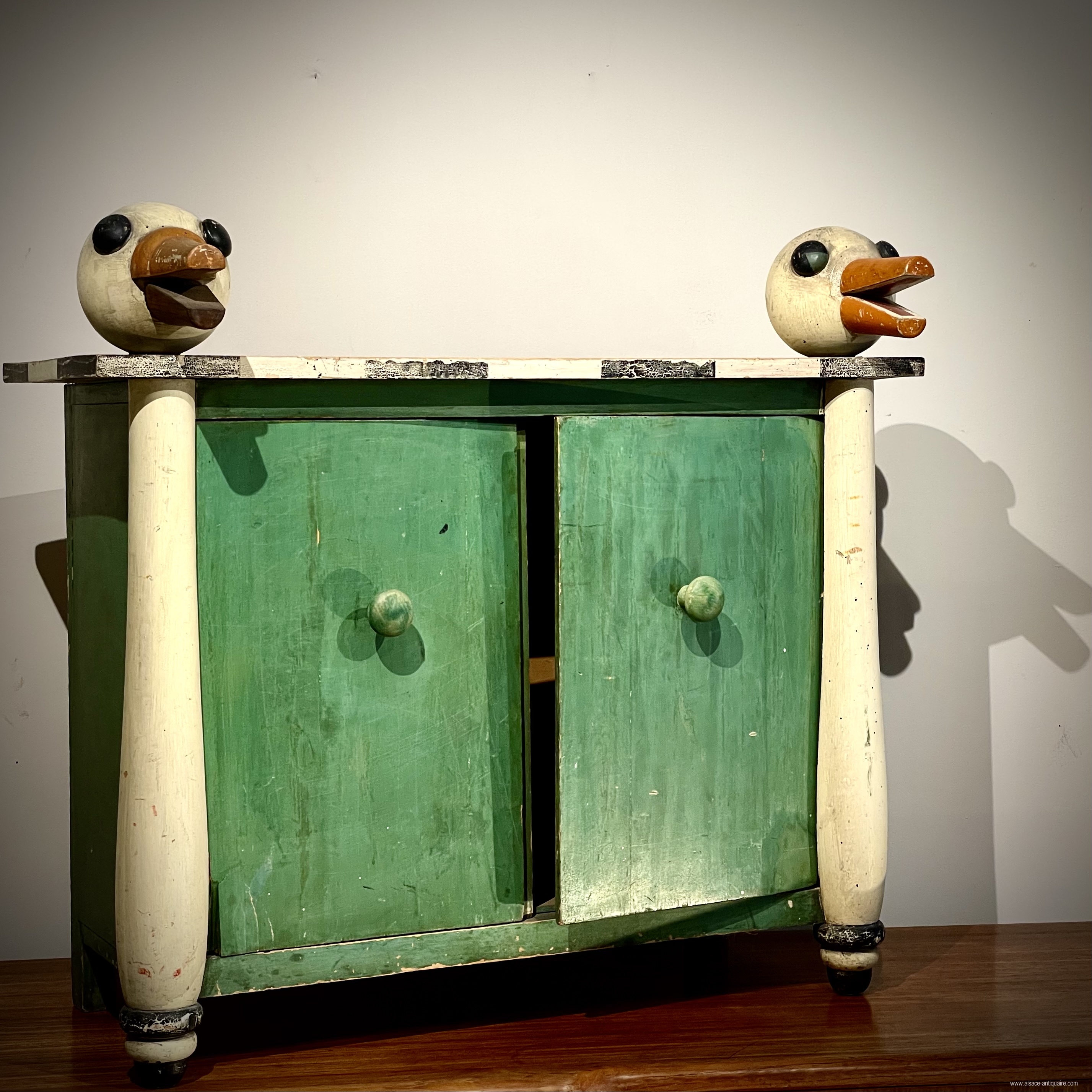 Pretty and rare child's furniture with polychrome decoration from the early 20th century art deco. it opens with two doors, the uprights have swollen columns surmounted by duck heads. It is produced by a renowned workshop for this style of creations.