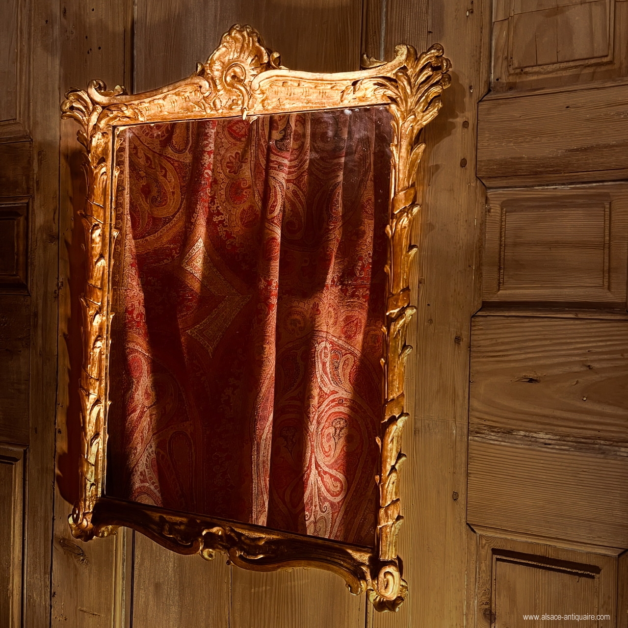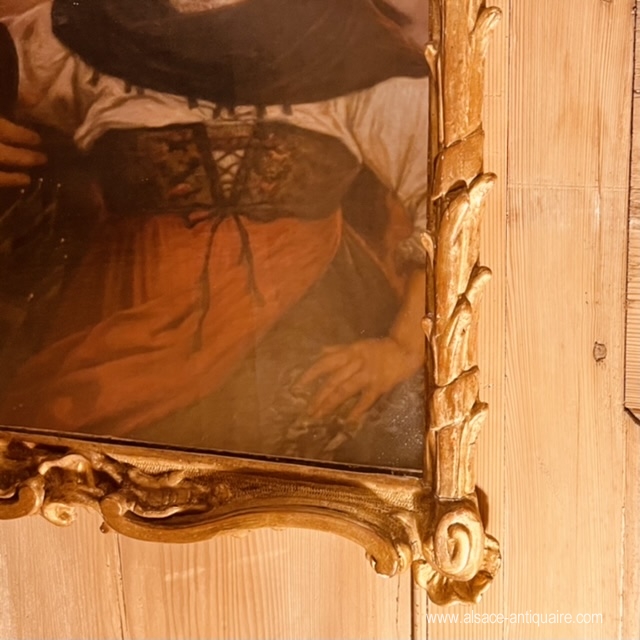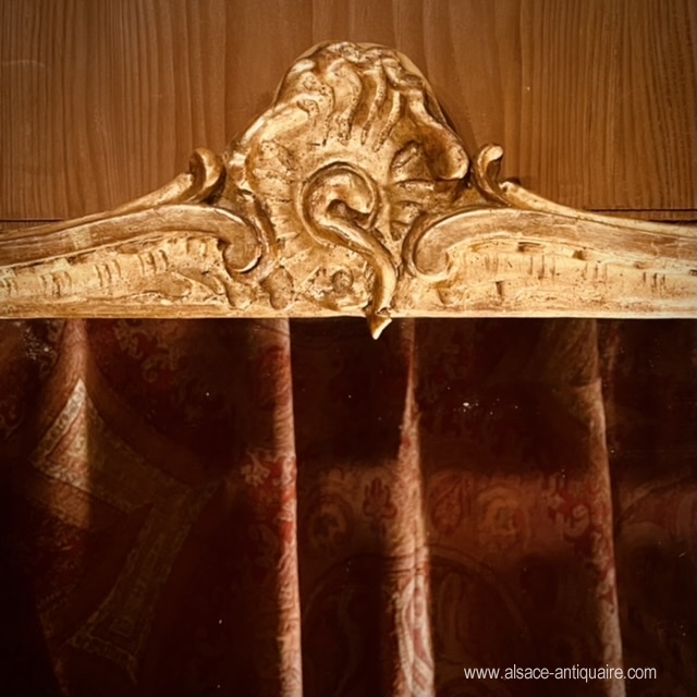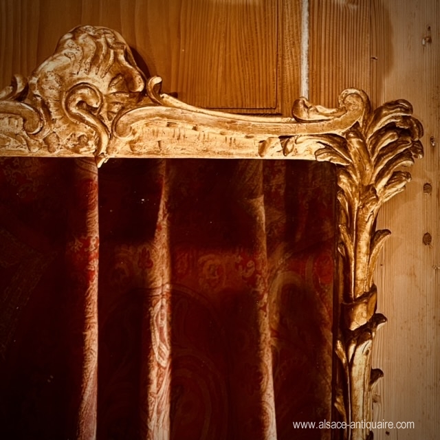 Asymmetrical shell decoration and side uprights carved with reeds for this pretty giltwood mirror, 18th century period