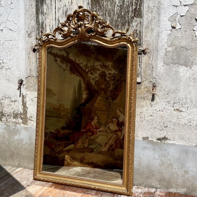 Ideal dimensions for this beautiful Napoleon III Epoque 19th century mirror in wood and gilded stucco, decorated with shell scrolls and scrolls, beautiful patina