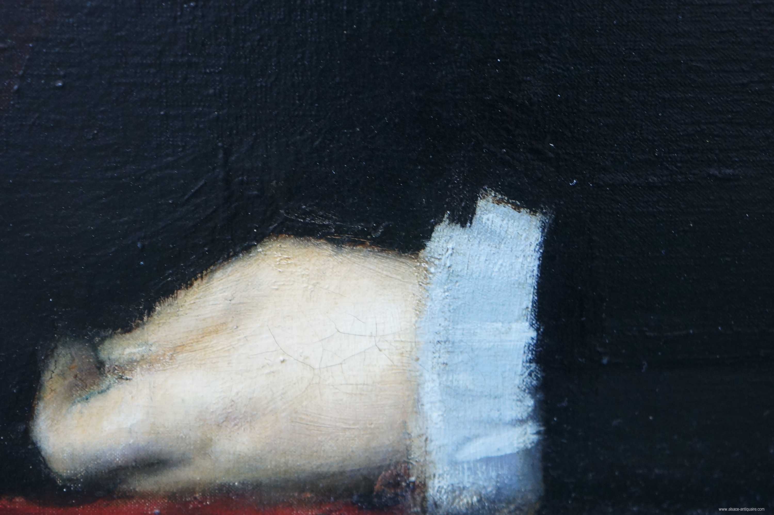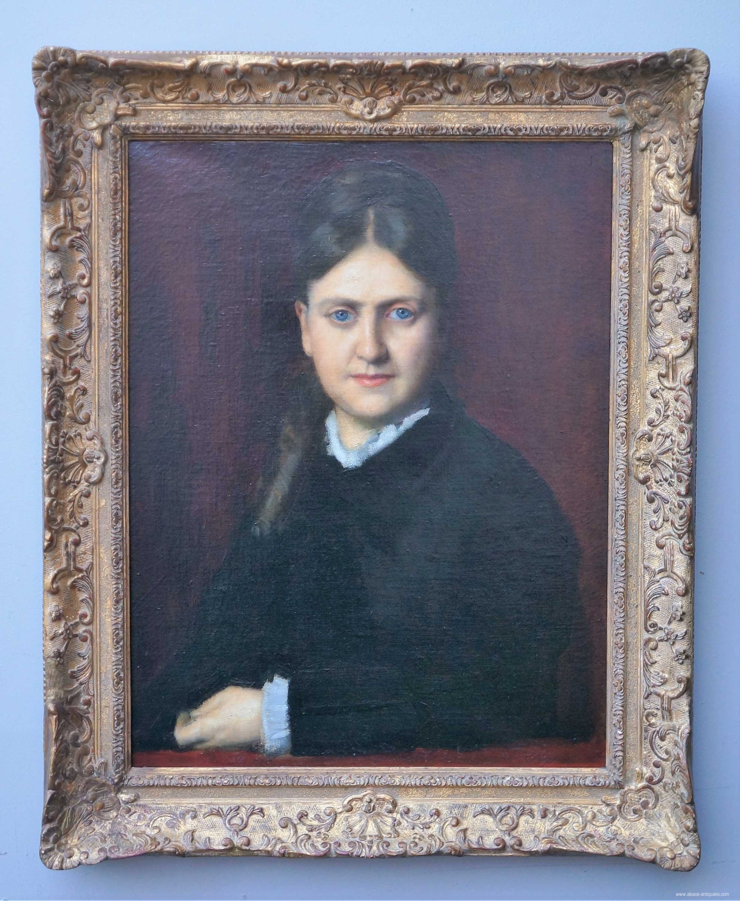 Jean-Jacques Henner (1829-1906) painted the portrait of Madam Hypolite Adam, born Perrocheau. This painting is signed on the top left. All the poses have been recorded by the artist himself. Oil on canvas, frame of wood and golden stucco.