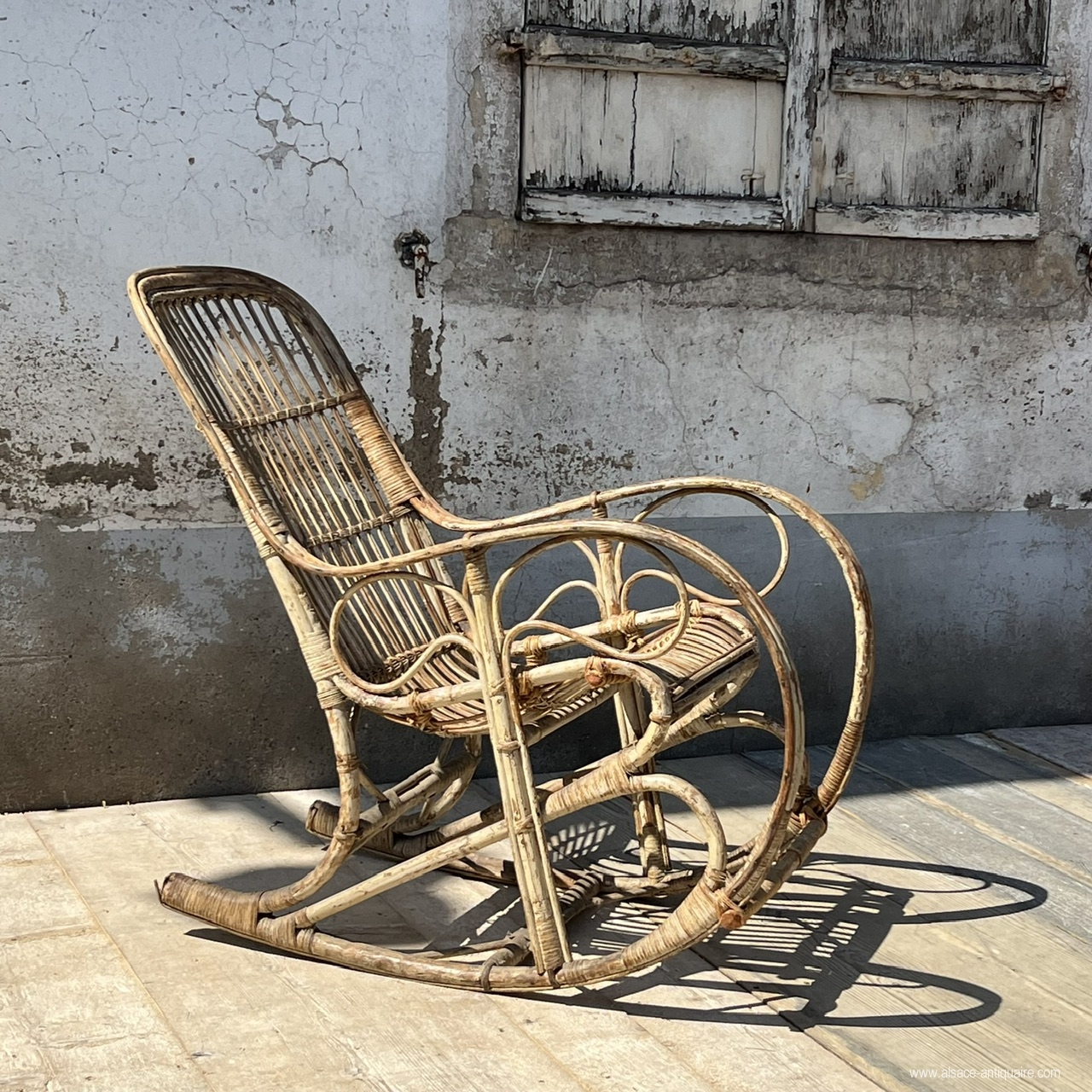 Beautiful design for this pair of rattan rocking chairs, ideal for completing a bucolic decoration in a veranda, living room or hall. The rocking chairs are Napoleon III and from the 19th century, they will also blend brilliantly into a vintage interior. Seats in their period juice, a few damaged rattan strands.